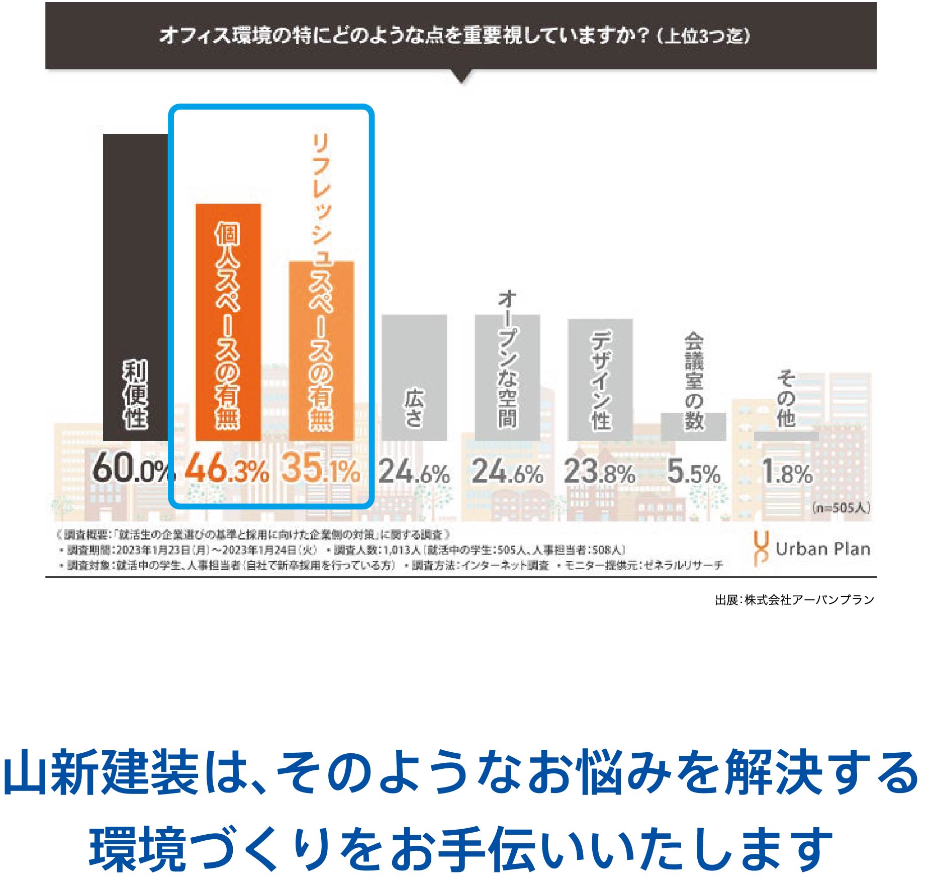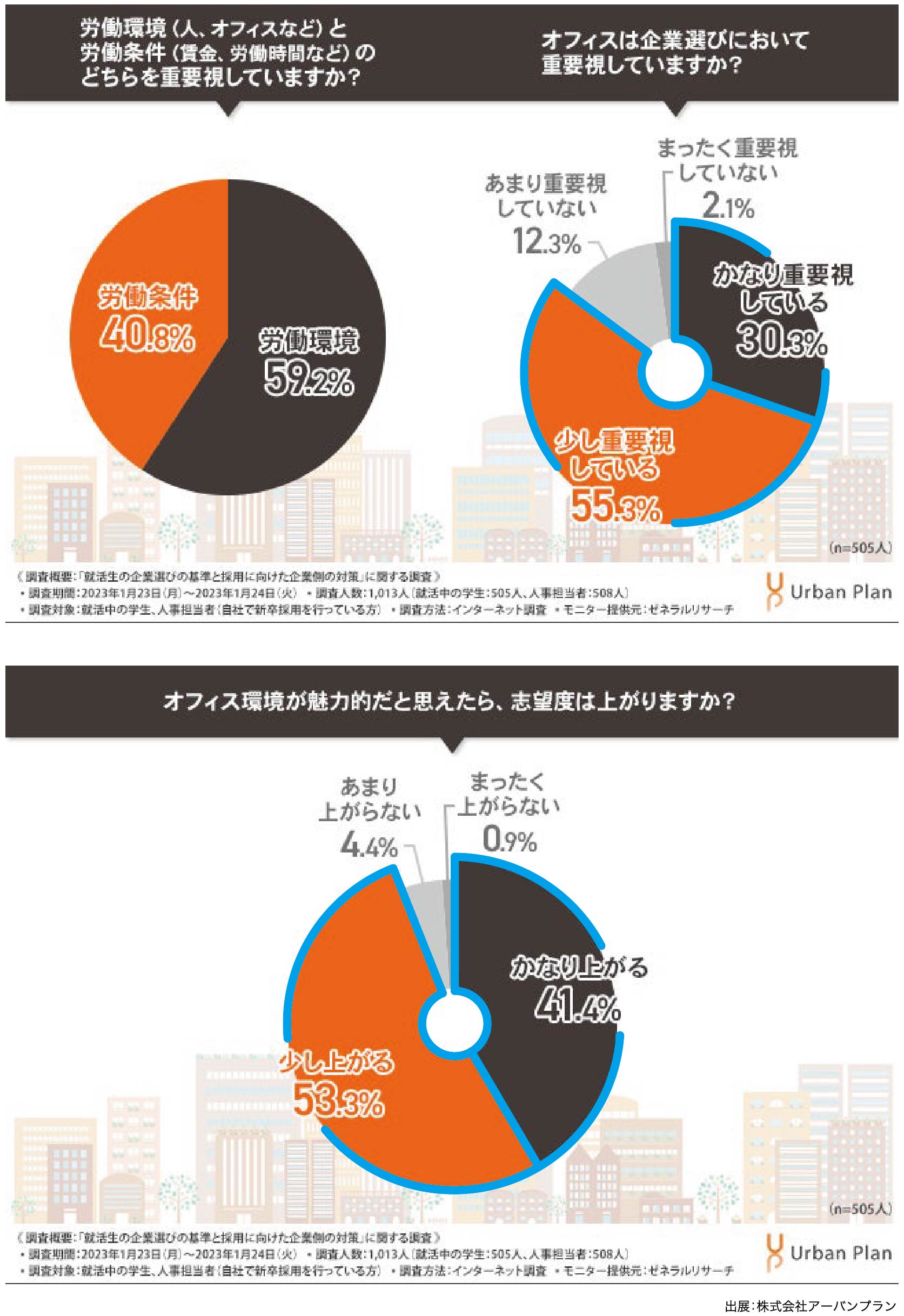 合わせると8割越えとなっております。その中で、「魅力的なオフィス環境は、志望度に